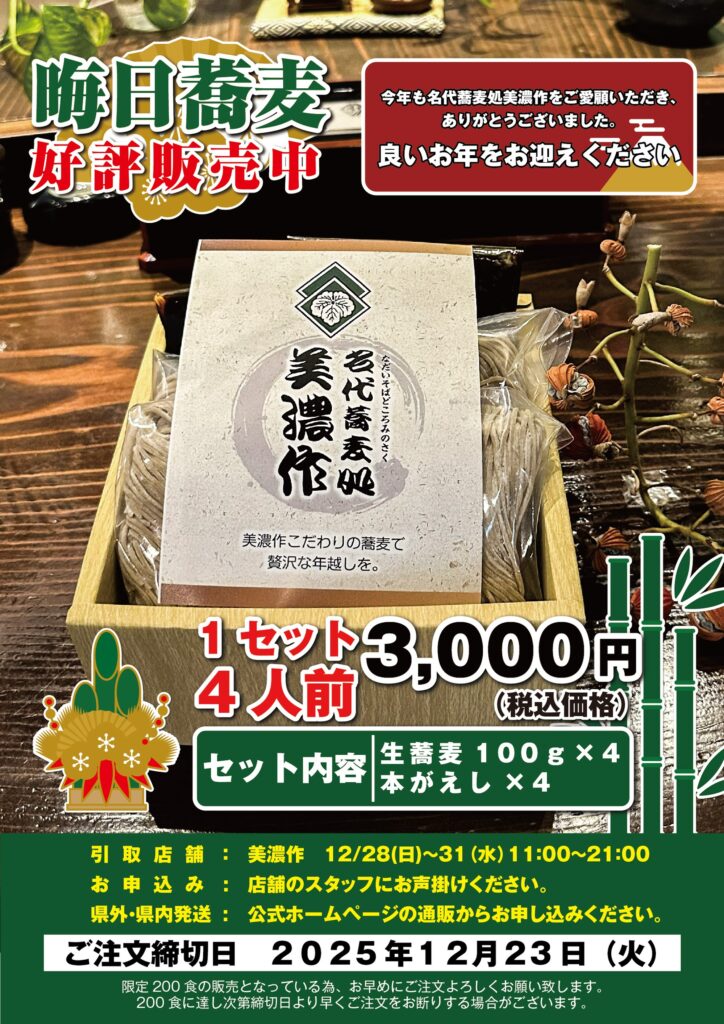 美濃作 晦日そば 店頭予約および通販販売のお知らせ
